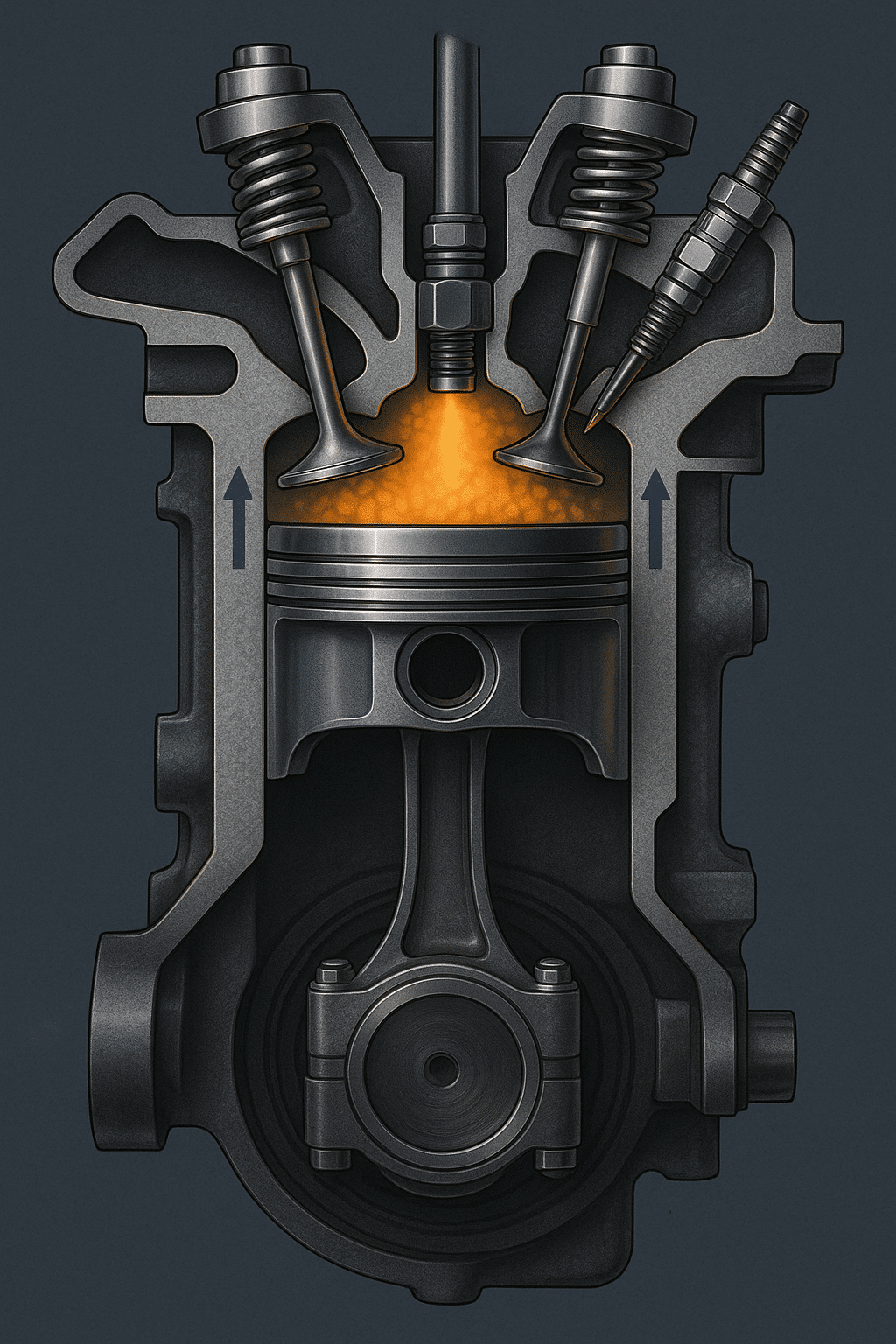- Volumen mínimo de la cámara de combustión: la geometría de la culata influye en la eficiencia.